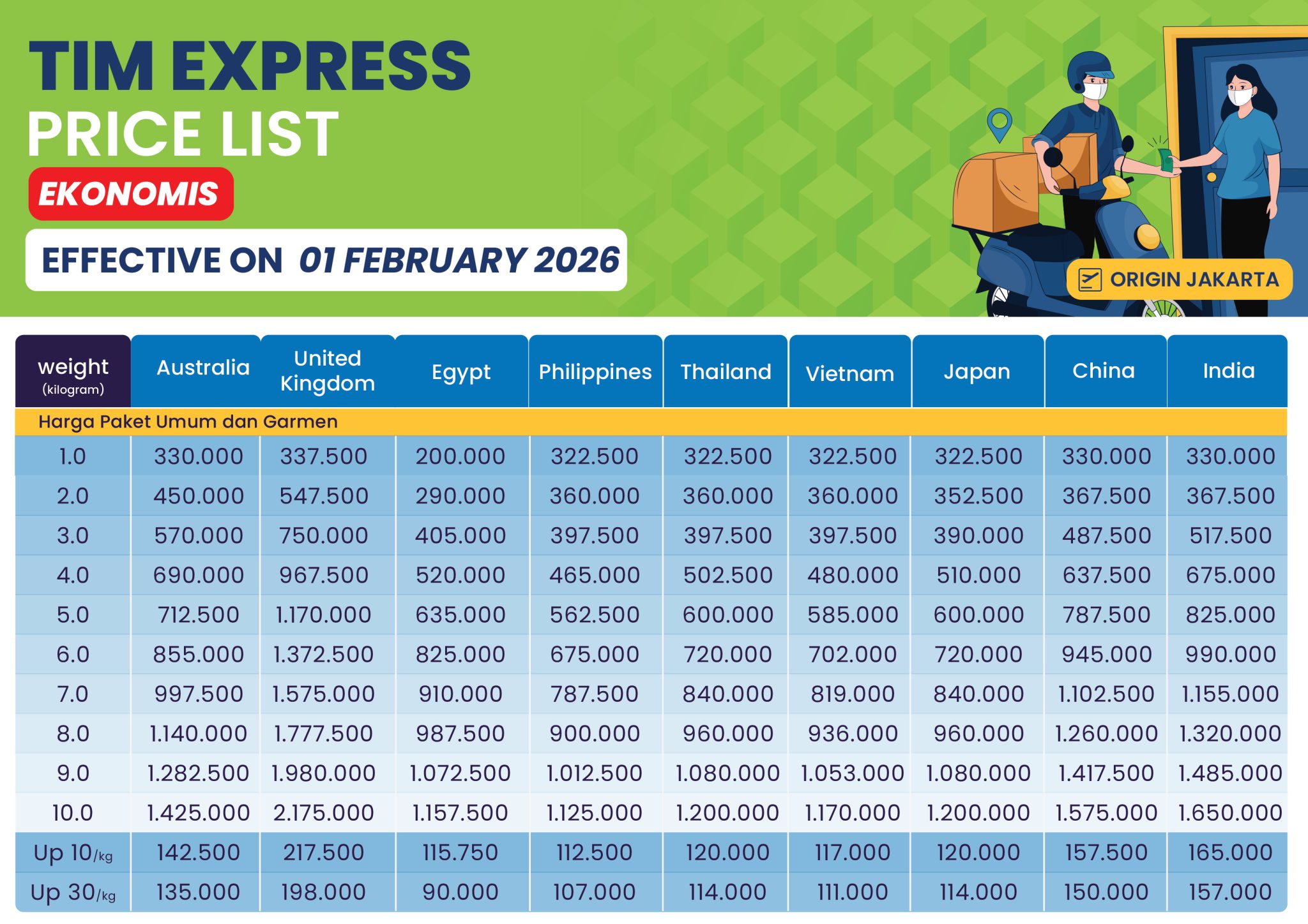 3. Harga tidak termasuk asuransi, pajak di negara tujuan, Out Delivery Area dan biaya yang timbul lainnya.